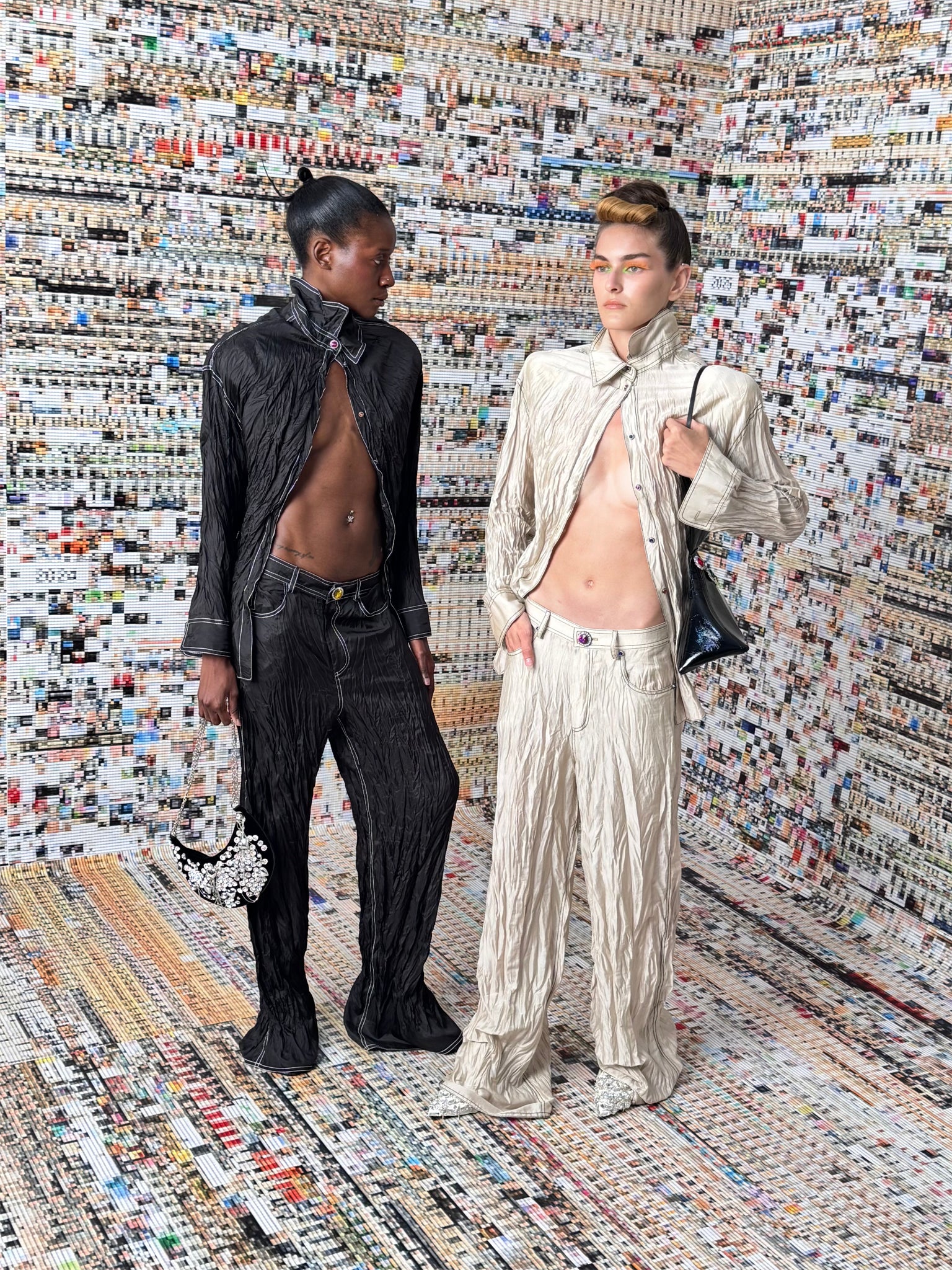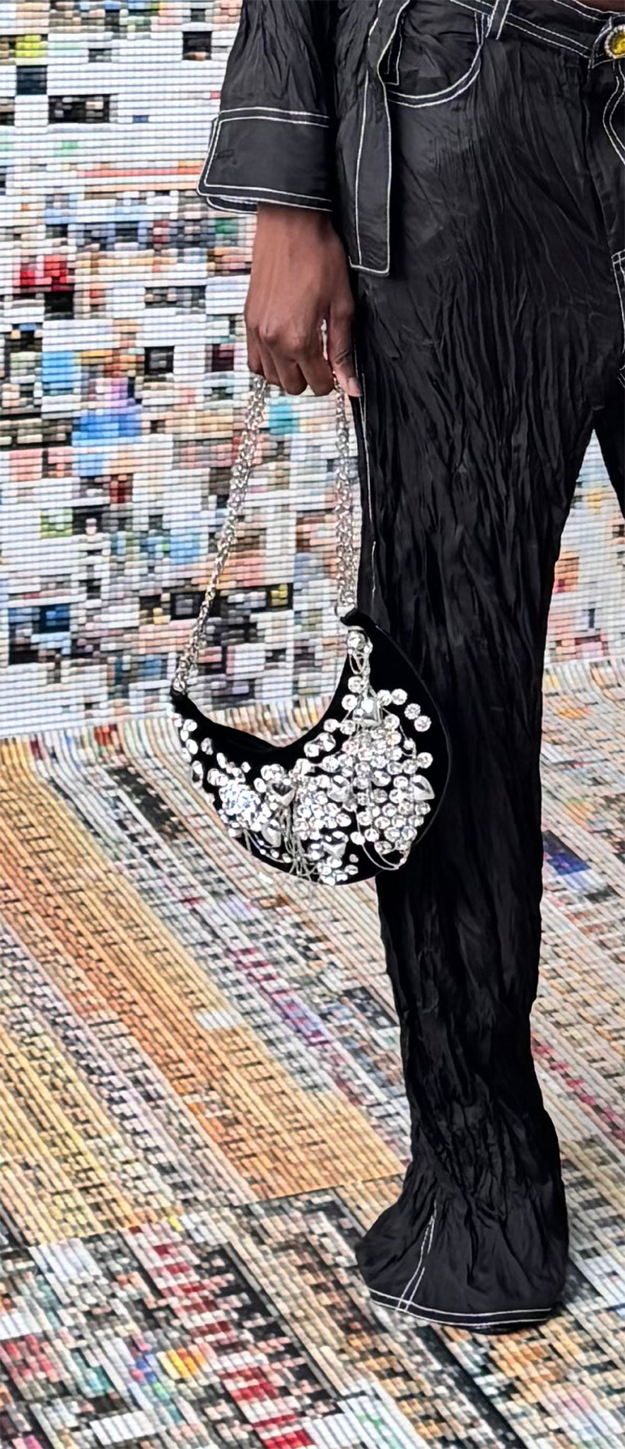 - Hand-placed jewel and rhinestone embellishment